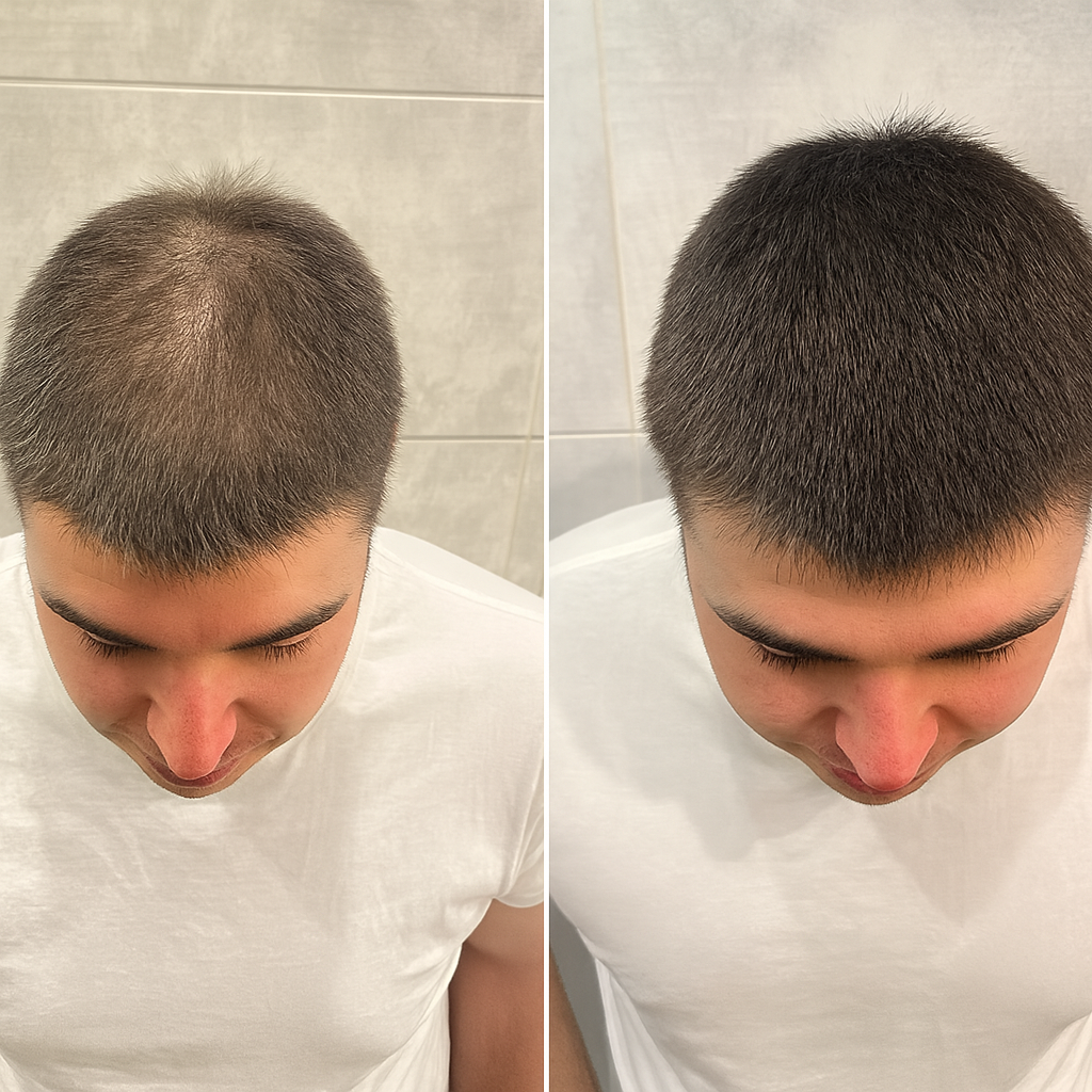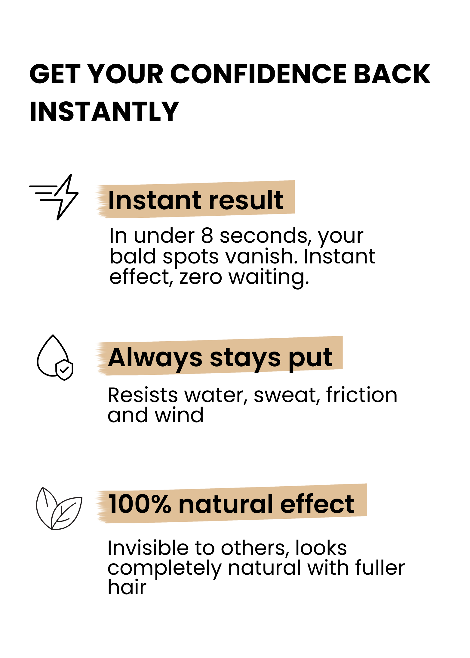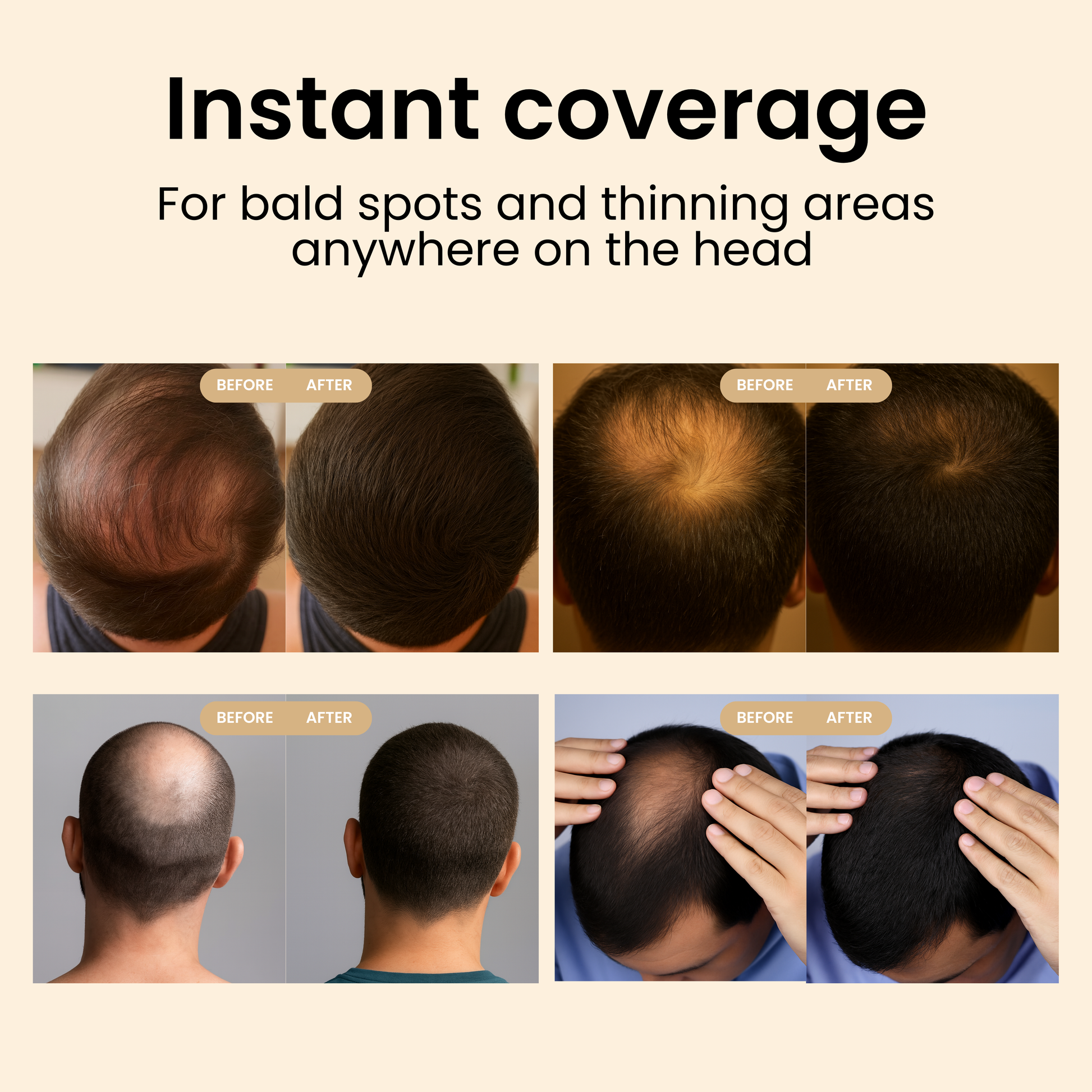 An instant hair concealer powder made with natural cotton microfibers designed to cover thinning areas and bald spots in just 8 seconds, with no surgery or harsh treatments needed.